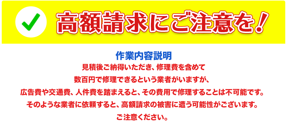 現地にてトラブルの点検、修理した場合の費用のお見積りをいたします。